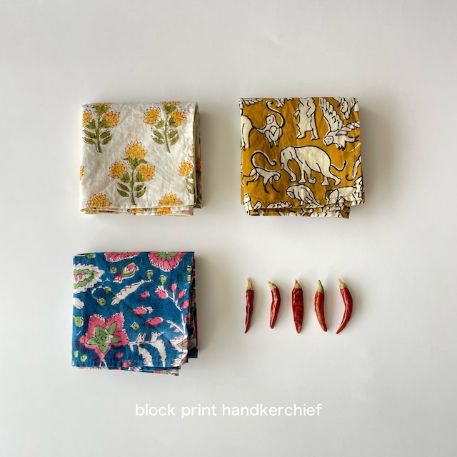 インドブロックプリントのコットンハンカチ|40cm|ポケットサイズ